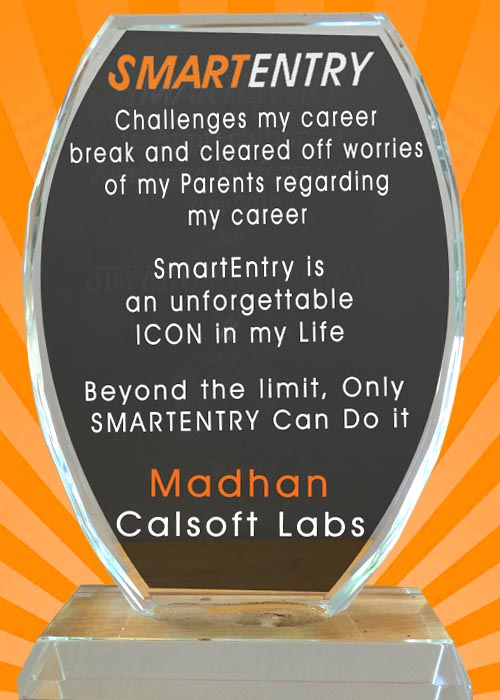 SmartEntry Complaints powers the way of getting more awards from students and force us to work for success in candidate’s placement. No doubt we have been awarded with lot of medals, heart feelings by google review, continuous support by word of mouth.